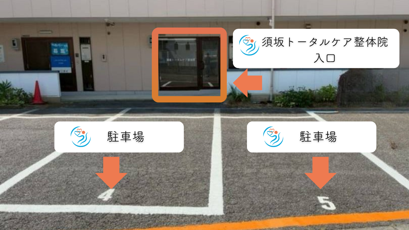 店舗前のNo.4・No.5の駐車スペース(2台分)にお停めください。