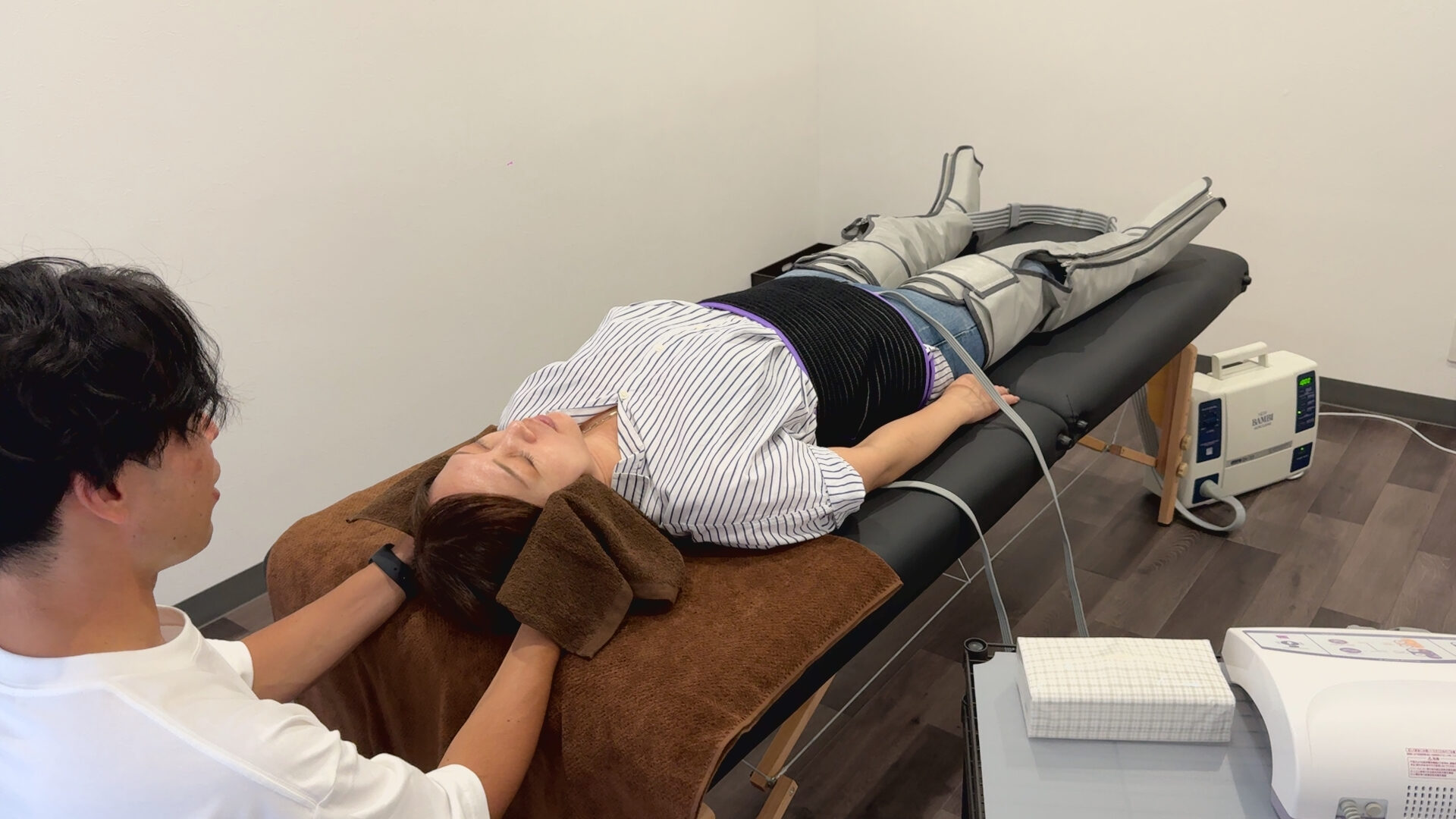 施術は頸部だけでなく、胸郭・骨盤・股関節など頸部以外にも原因になりうる部位の施術を行います。